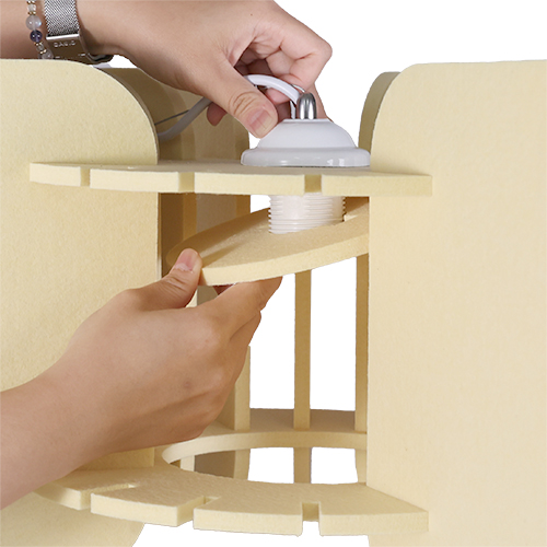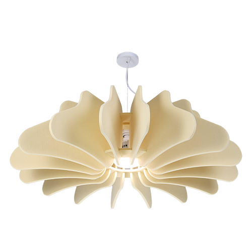 花朵盛開好心情,降低室內迴盪干擾的噪音,吸音面積約2.87平米,是裝置藝術、空間吸音體、也是全光譜健康照明燈。直徑92cm *高 26.3cm, 本體採用高密度聚酯纖維吸音材質,經過多層吸收折射的聲學設計,最大化吸音效率。提升音樂或語音的清晰度,可懸掛於餐廳、會議室、展覽廳。通過環保及防焰檢驗,健康安全。