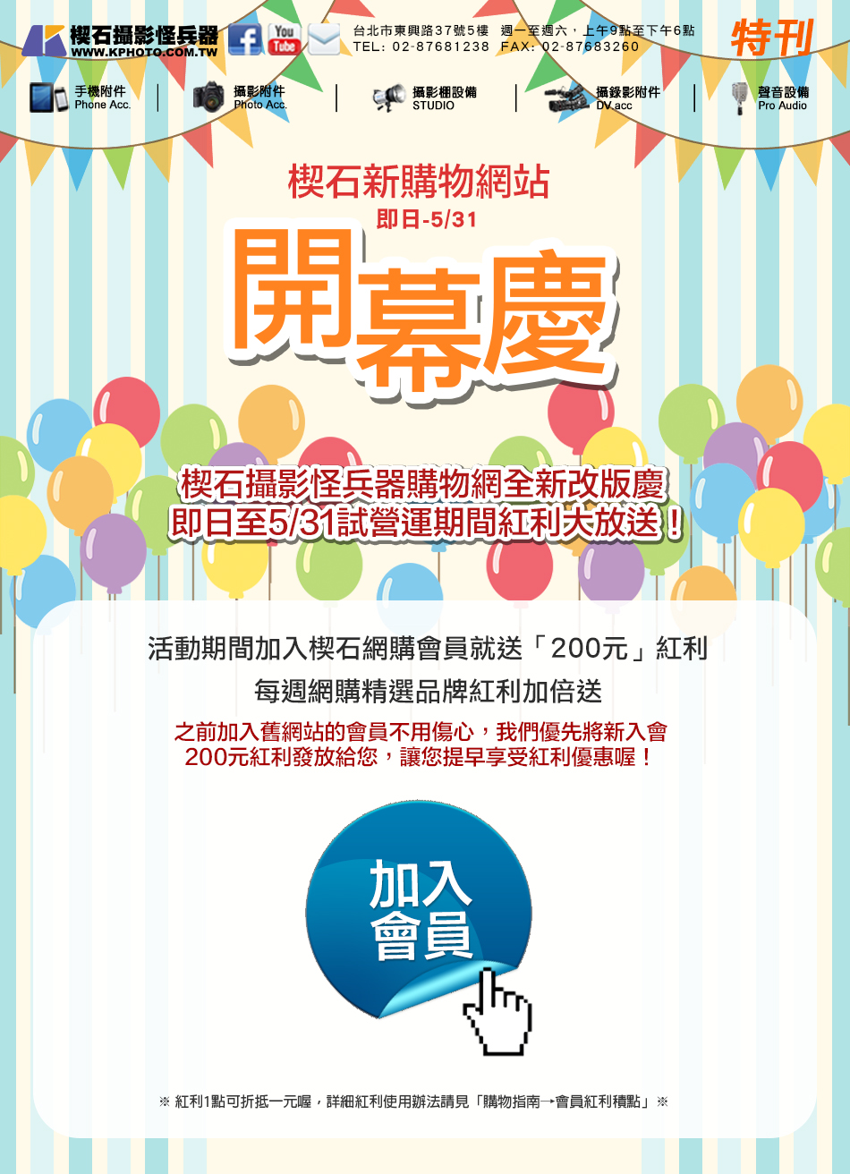 楔石電子報特刊-楔石攝影怪兵器購物網全新改版!加入會員就送購物紅利喔!