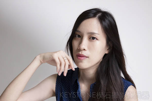 攝影師站在大型八角罩前面,因此幾乎不可能產生任何陰影,我們另外在Model右後方補上一盞條罩勾勒邊緣,讓整體畫面更立體。