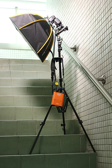 可以用在樓梯這種高低差環境的特殊燈架(使用示意圖) |