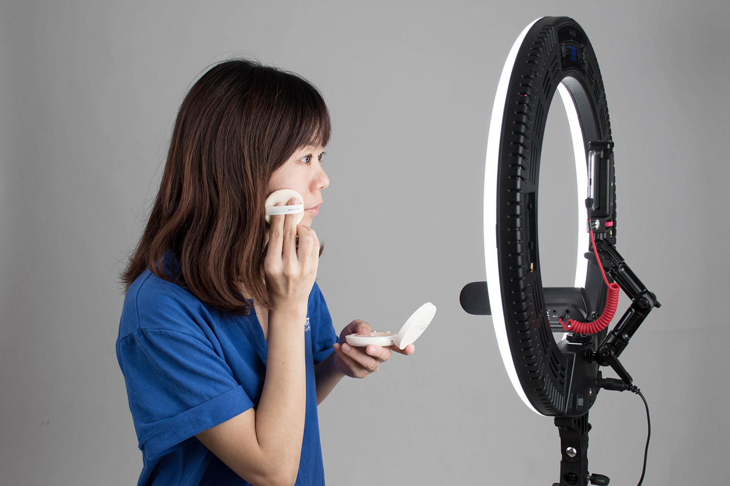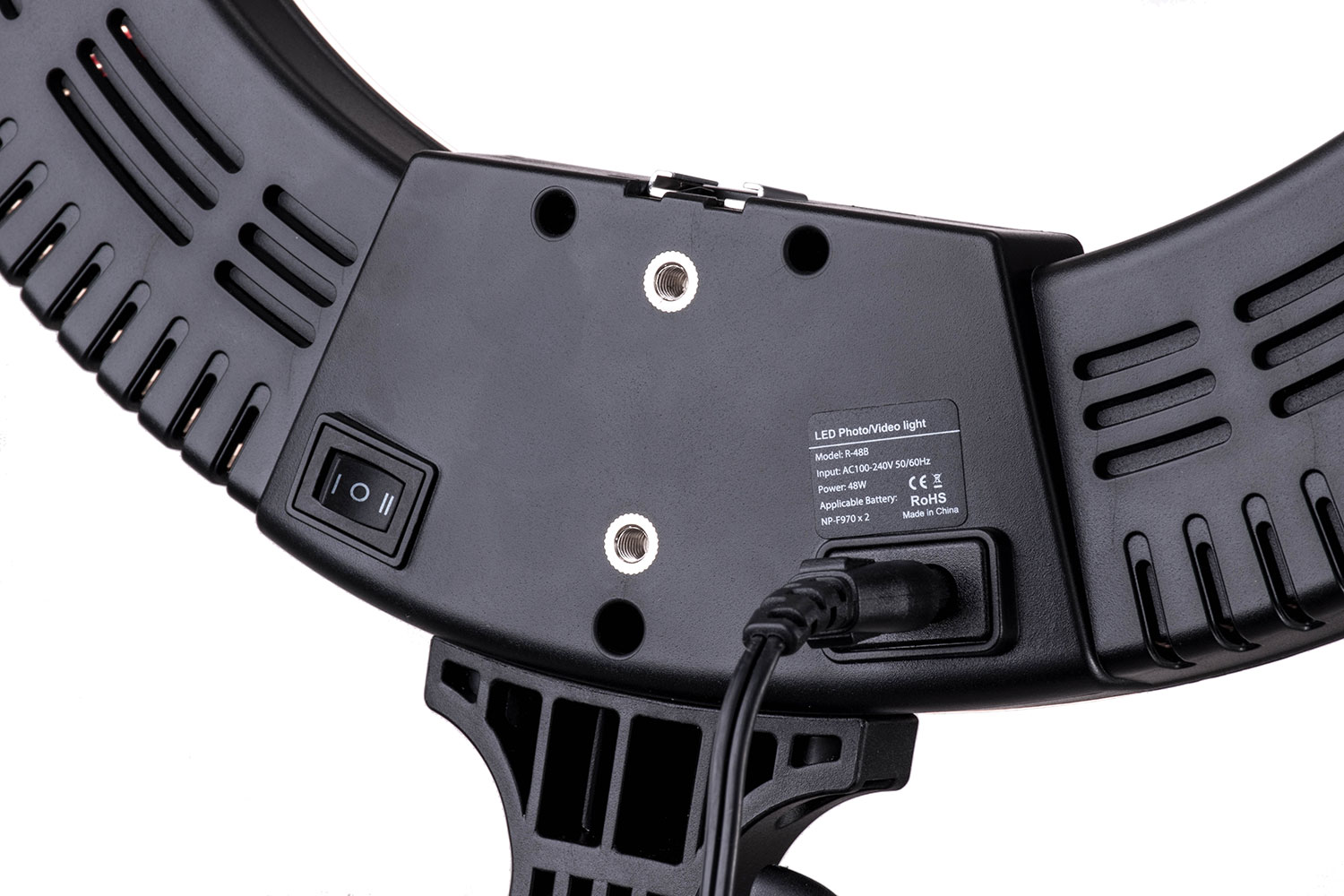 48W, 3200~5600˚K, Ra96, 4800lm, AC/DC兩用方便外拍使用,可調色溫,不刺眼高亮度輕薄環燈,旋鈕方便控制燈光強弱與色溫變化。