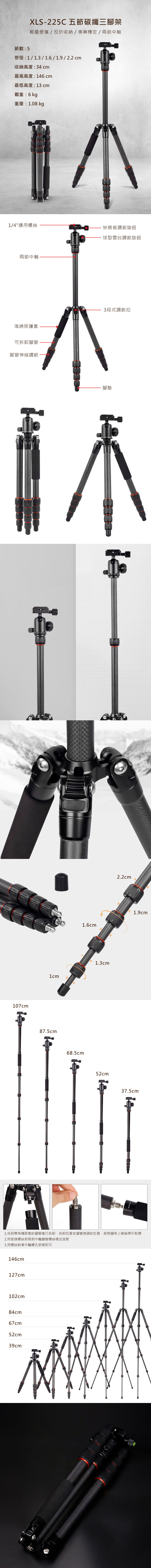 腳架節數 | 5節 | 最粗管徑 | 2.2 mm |