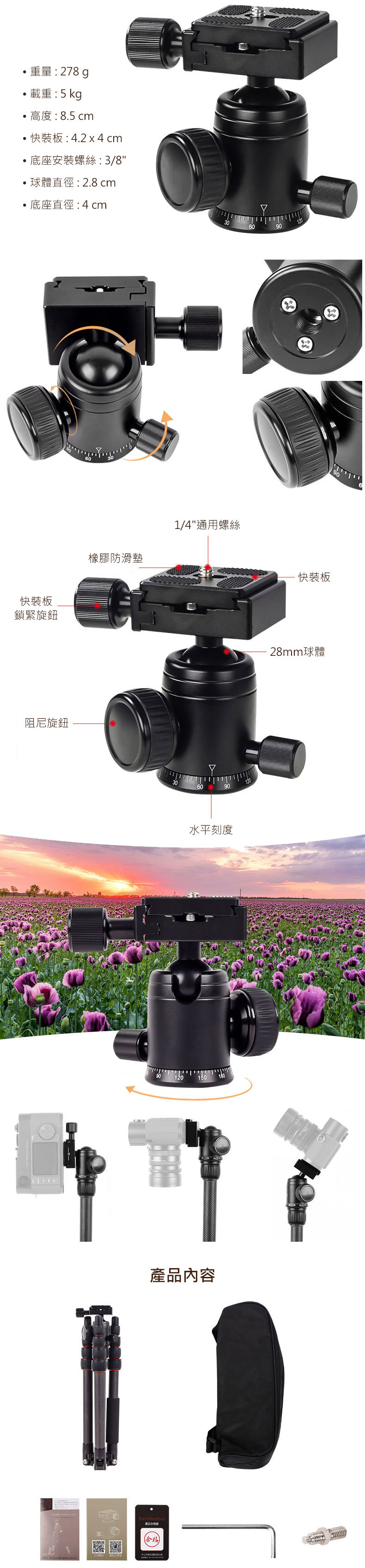 載重 | 6 kg | 雲台類型 | 球型雲台 |