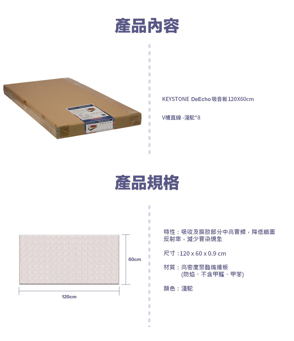 每箱覆蓋面積1.44平米。採9mm厚,5.5 kg 光面高密度聚酯纖維,NRC 吸音系數0.77,超強吸音,消除回音,容易清潔,無甲醛,採防焰原料,適合DIY,簡易黏貼、拆除,重複使用。(建議貼覆面積為室內六面總面積的1/3以上)(面積價格預估表)