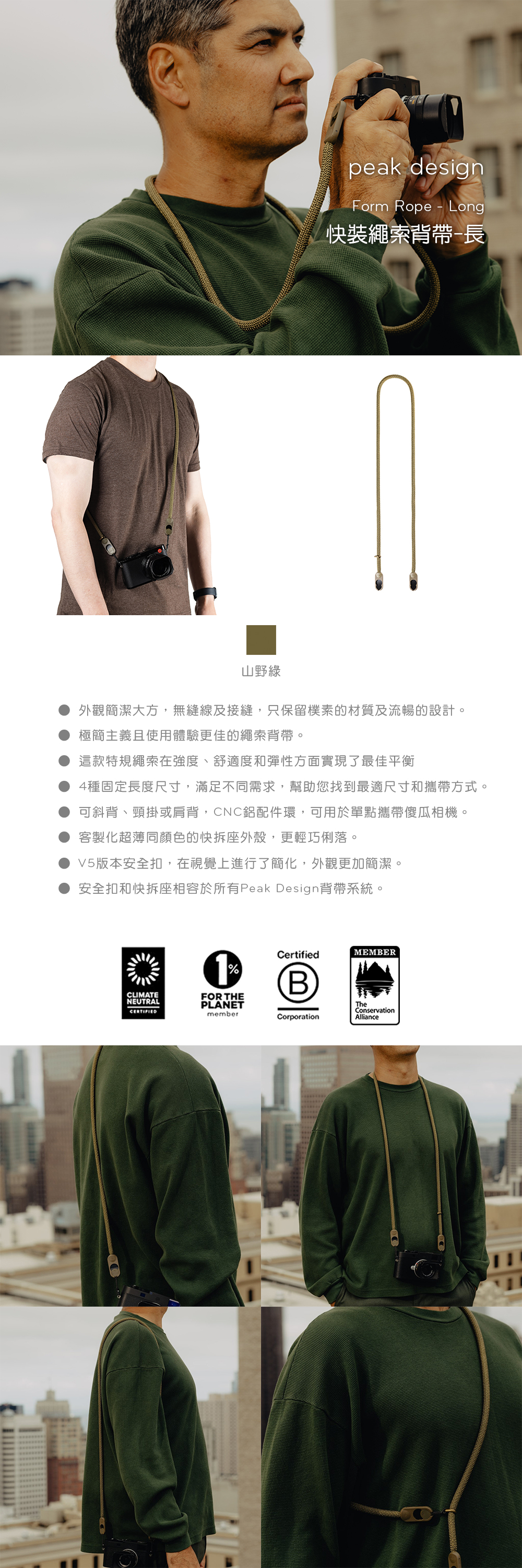 PEAK DESIGN 快裝繩索背帶 Form Rope (長) 山野綠