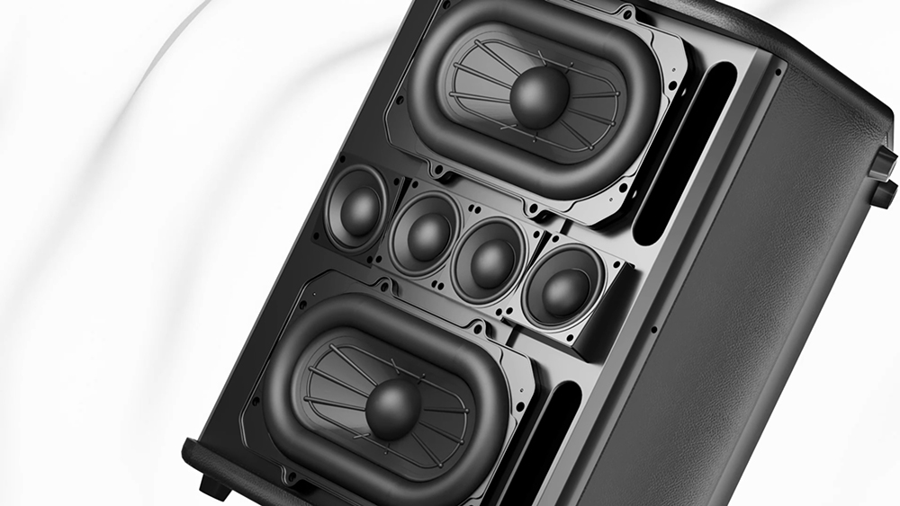 T3 Pro秉持著便攜性與高品質音效並重的設計概念,全面升級聲學架構與功率效能。兩個5"×7"跑道型低音揚聲器上下對稱佈局,與橫向鉸接式線性排列的中高頻喇叭單元構成聲學同軸系統,搭配隱藏倒相孔技術,有效抑制駐波干擾與聲音反射,這種獨特的排列設計在聲學性能上達到了新的高度,進一步提升了低頻和聲像定位的準確度。內建ADI高保真數位音訊處理器,融合HD高解析音色建模電路,精確還原人聲與樂器的細膩質感,呈現豐富的動態層次與沈浸式的聽覺體驗。 |