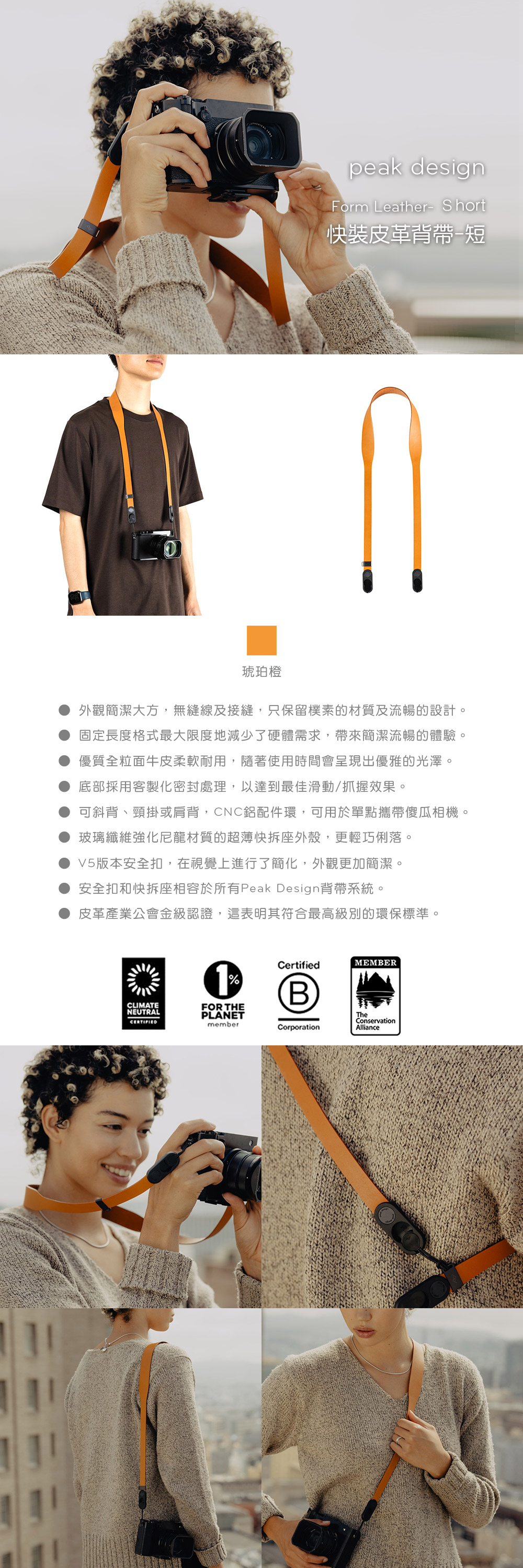 PEAK DESIGN 快裝皮革背帶 Form Leather (短) 琥珀橙