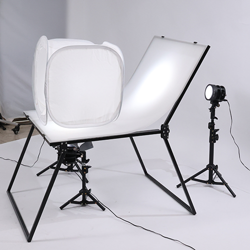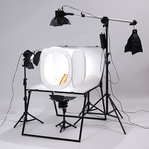 攝影台在底部及背後各一盞,左右或上方各一盞如此可以完整去背,適合拍攝各種材質商品,尤其是最難拍的透光材質。 |