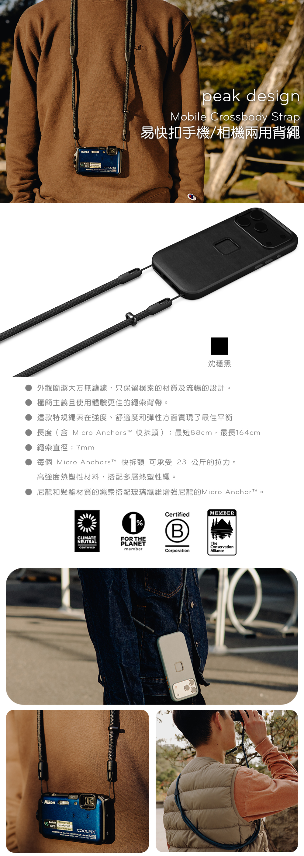 PEAK DESIGN 易快扣手機/相機兩用背繩 經典黑