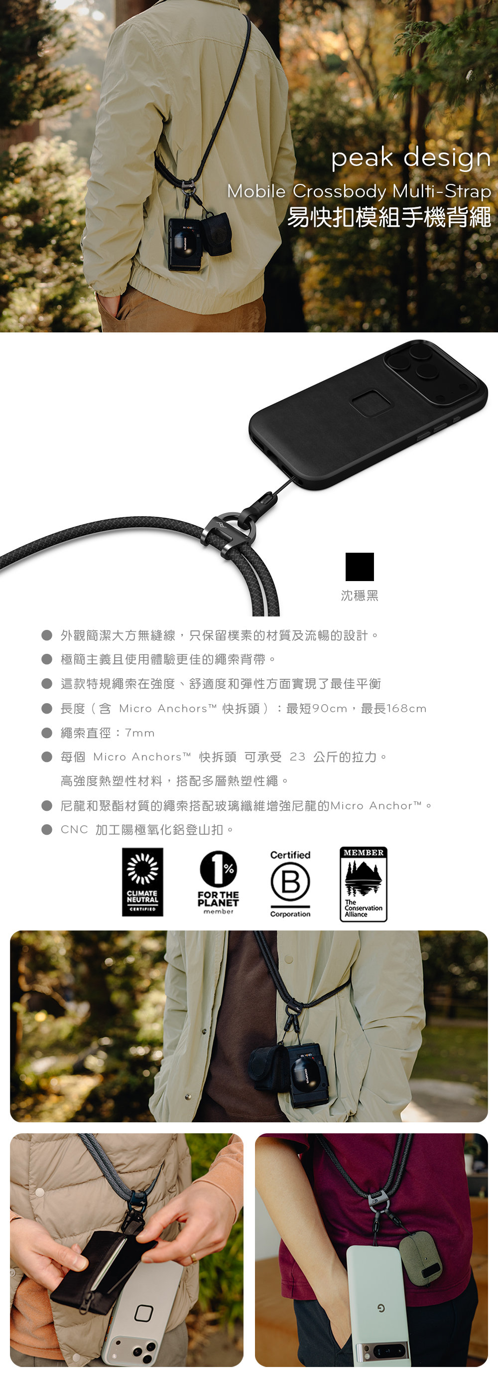 PEAK DESIGN 易快扣模組手機背繩 經典黑