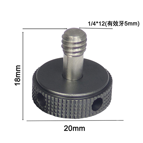 總長18 mm,螺絲長度12 mm,1/4"螺紋,旋鈕有開洞,可用板手或螺絲起子迫緊。