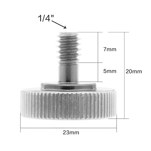 總長20 mm,螺絲長度12 mm,螺牙長度7mm,1/4"螺紋,底部有1/4"母螺孔。